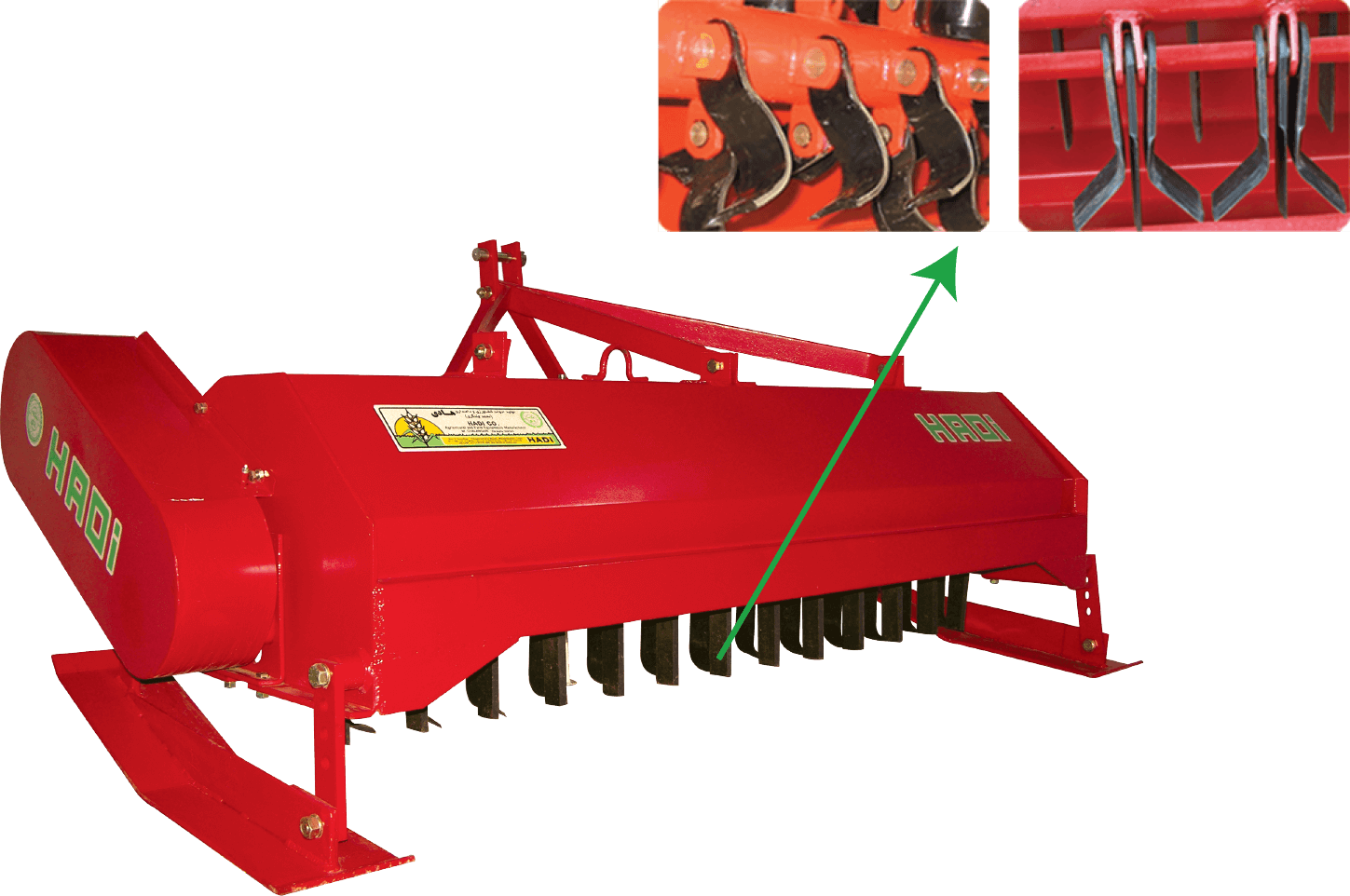 Note: The device blades are replaceable so as to change steel cutting blade with plastic ones to defoliate or detop crops such as potatoes and beet seed. In addition, when working with this device, care must be taken not to let the blades penetrate the soil.